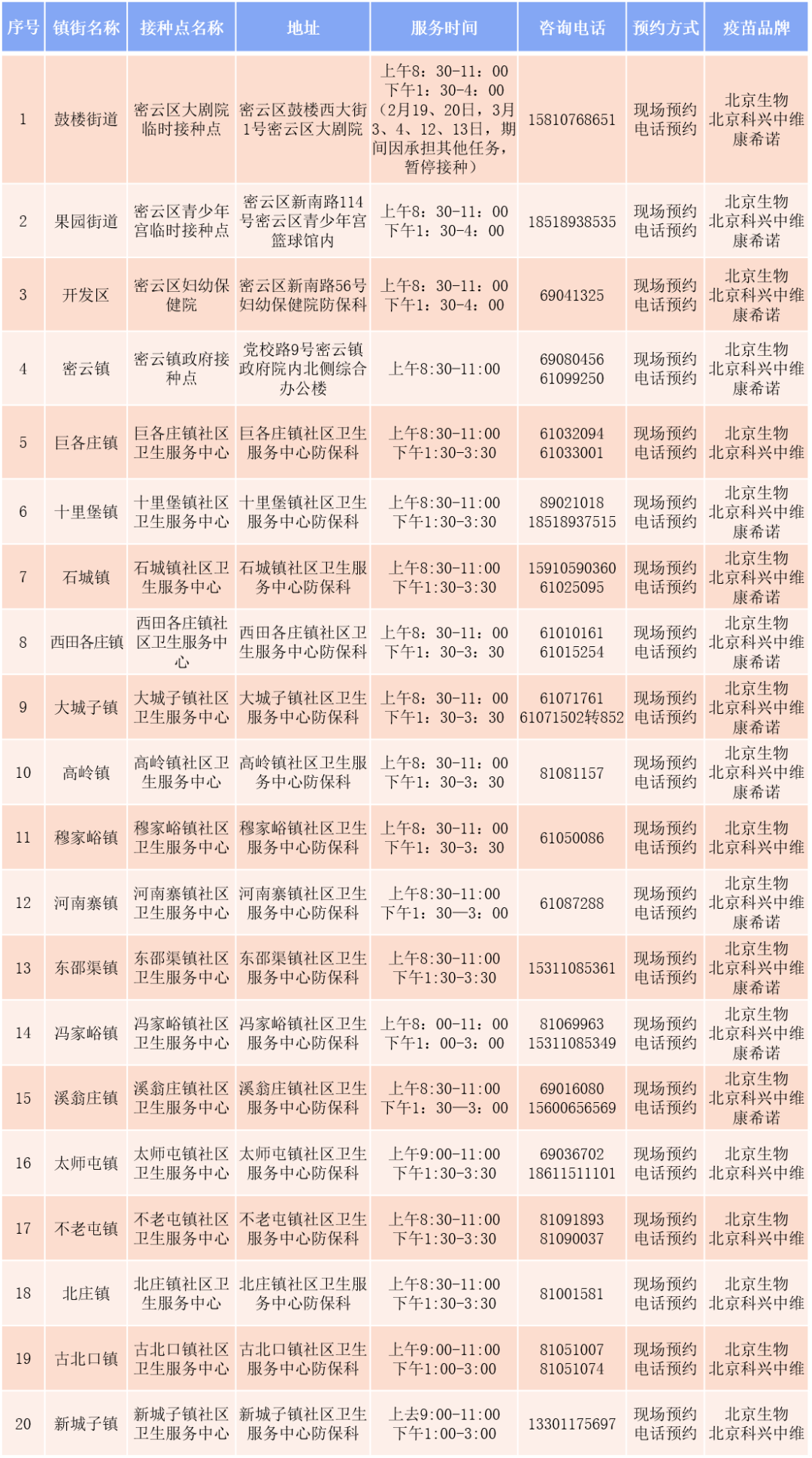 最新!密云区新冠疫苗接种点信息公示(2022年2月7日生效)!