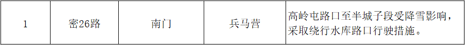 一、影响山区线路23条(采取停驶线路7条、区间行驶线路15条、绕行线路1条)