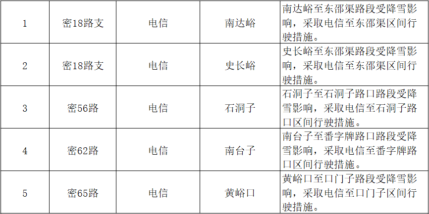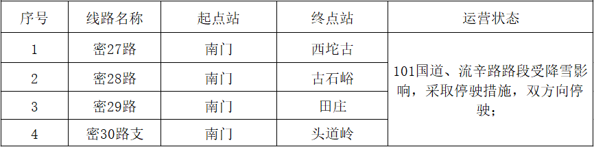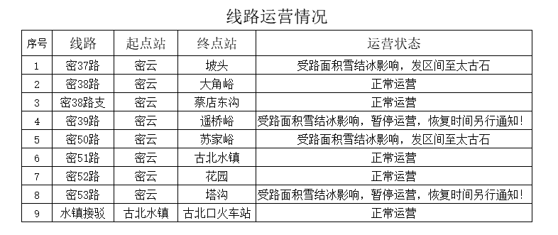 我公司对雪后路况进行勘验,于2023年2月10日部分线路恢复运营,具体情况如下: